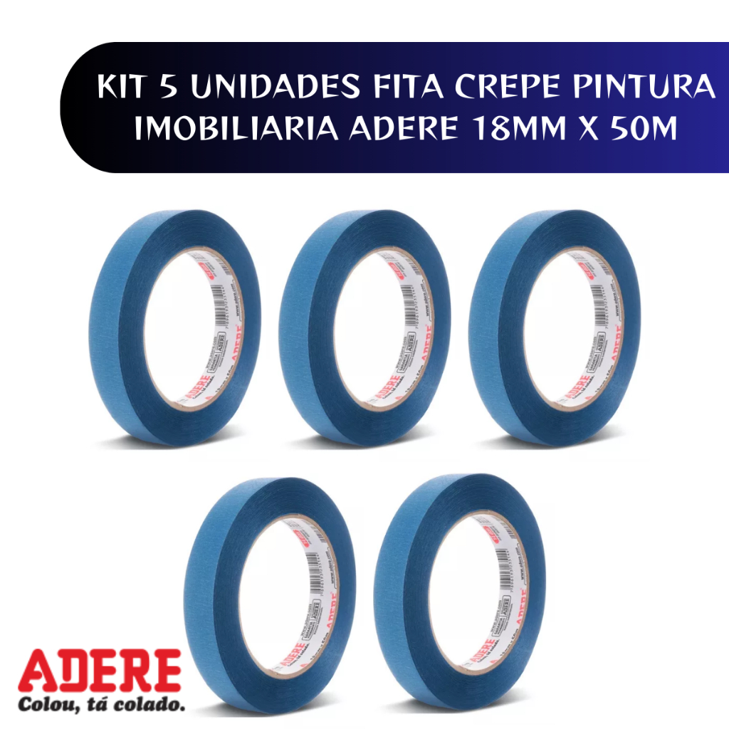Kit 5 Unidades Fita Crepe Azul Pintura Imobiliária 18mm X 50m Adere
