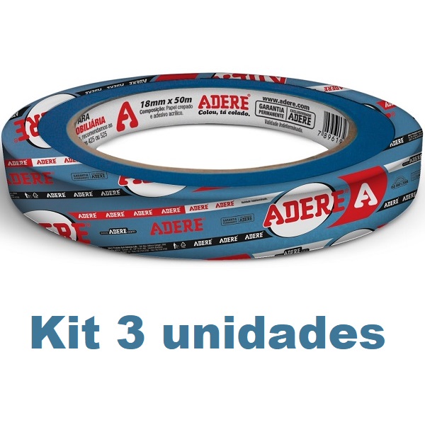 Kit com 3 Fita Crepe Azul Pintura Imobiliaria Parede 18MM X 50M Adere