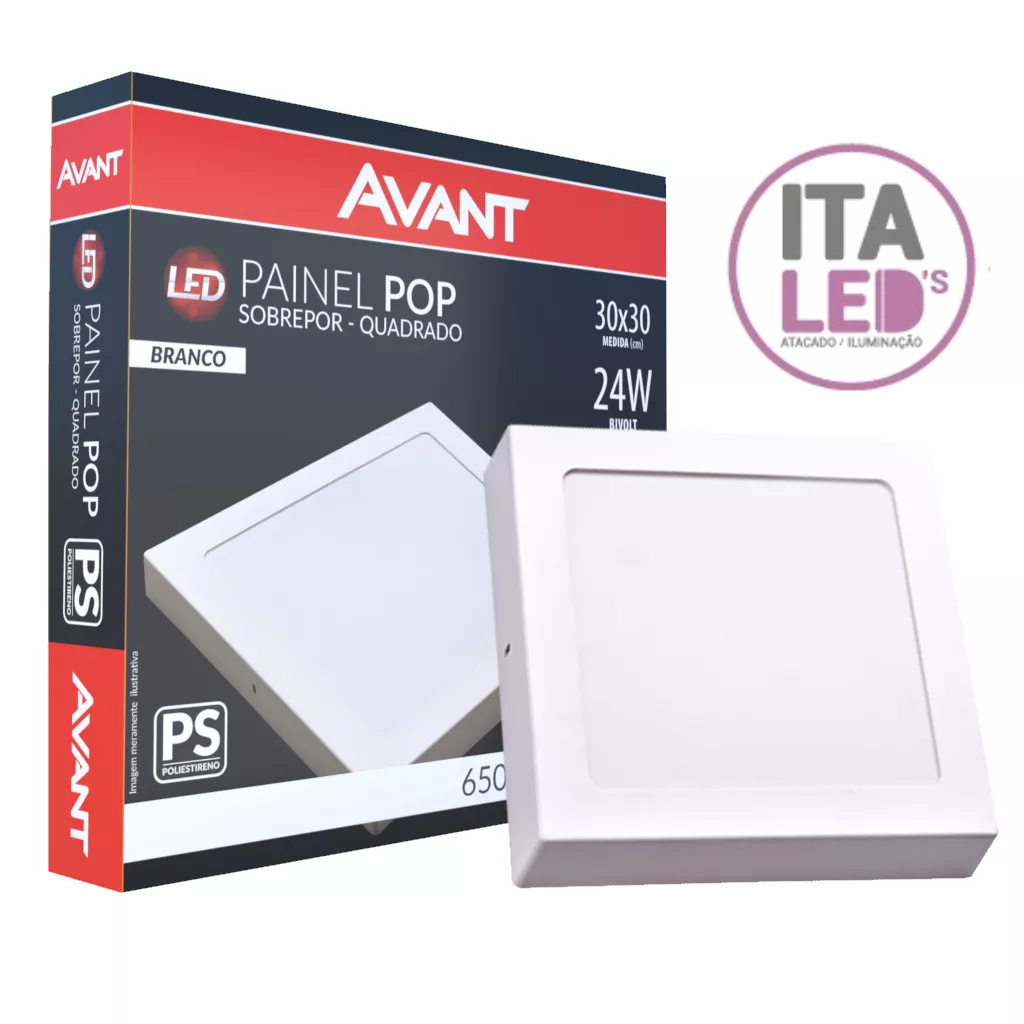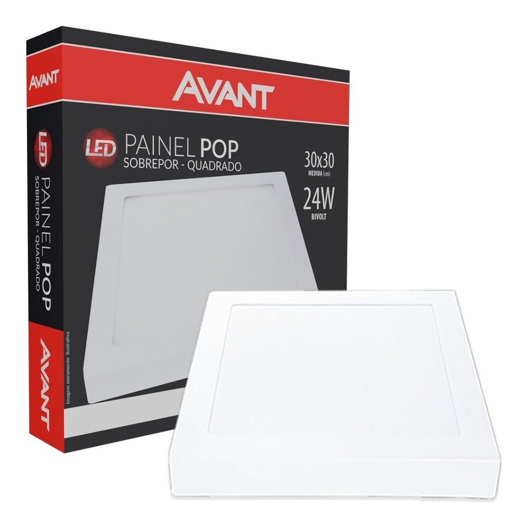 Luminária de Teto LED Avant | Painel Plafon Sobrepor Quadrado | 18W 24W | 6500K Branco Frio | Bivolt | Iluminação Interna de Qualidade