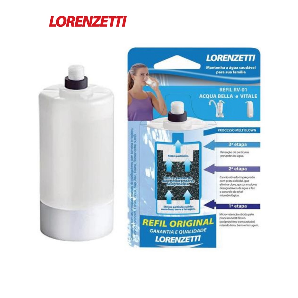 Refil para torneira Acqua Bella e purificador Vitale RV-01 Original Lorenzetti Promoção