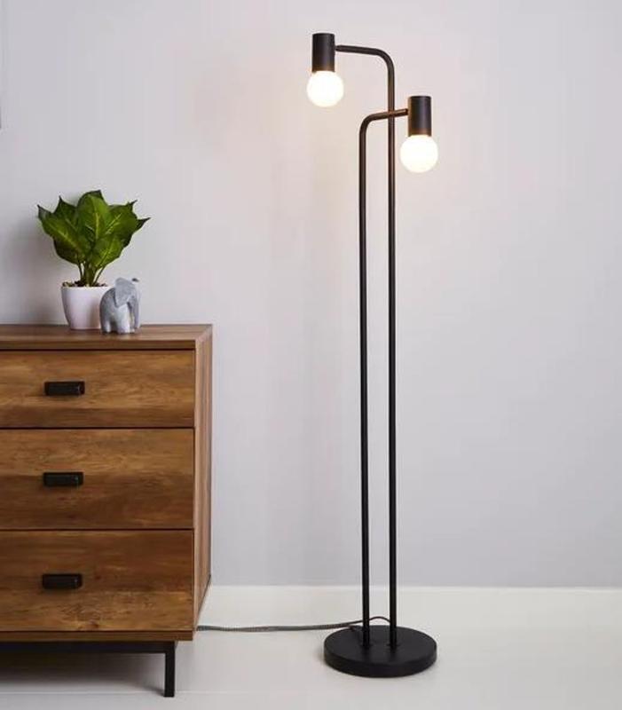 Luminária de Chão Metálica 2 Hastes 2 Alturas Base Redonda p/ 2 Lâmpadas E27 - Preta