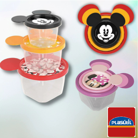 Conjunto de Potes Conect 3 unidades Mickey e Minnie Plasútil / Pote lanchinho / Papinha / Bolacha / Cambuca / Vasilha / Tapoer