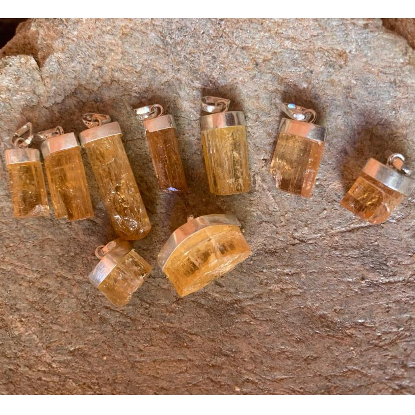 Pingente Pedra Topázio Imperial Bruta Prata 925 Castão. Felicidade e Harmonia