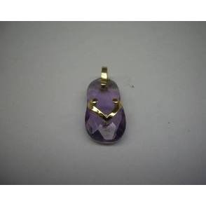 Pingente chinelinho em ametista pedra natural com correia e castão em ouro 18k