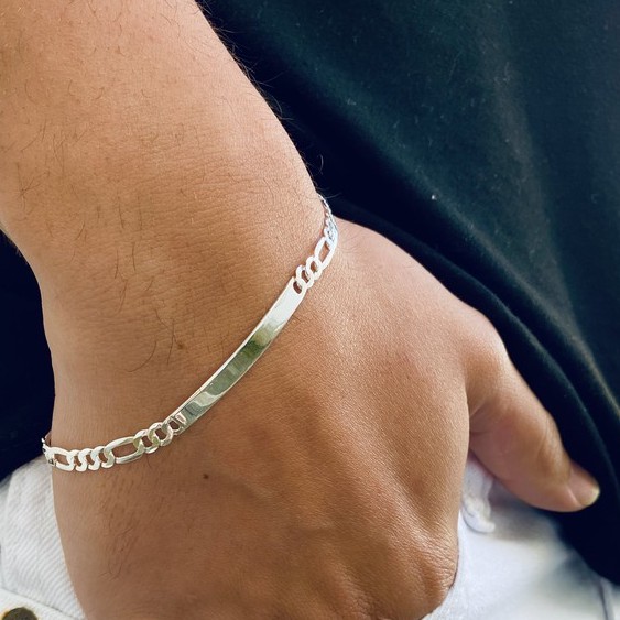 Pulseira Masculina Prata 925 Placa e Corrente 3x1 Joia em Prata Legítima