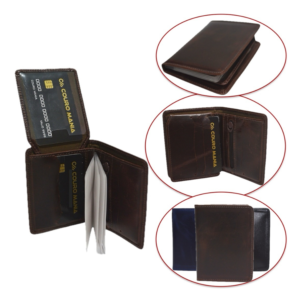 Carteira Masculina em L COURO LEGÍTIMO Aba Extra para Documento com Porta Moedas Original Moderna Azul Preto Marrom 51100