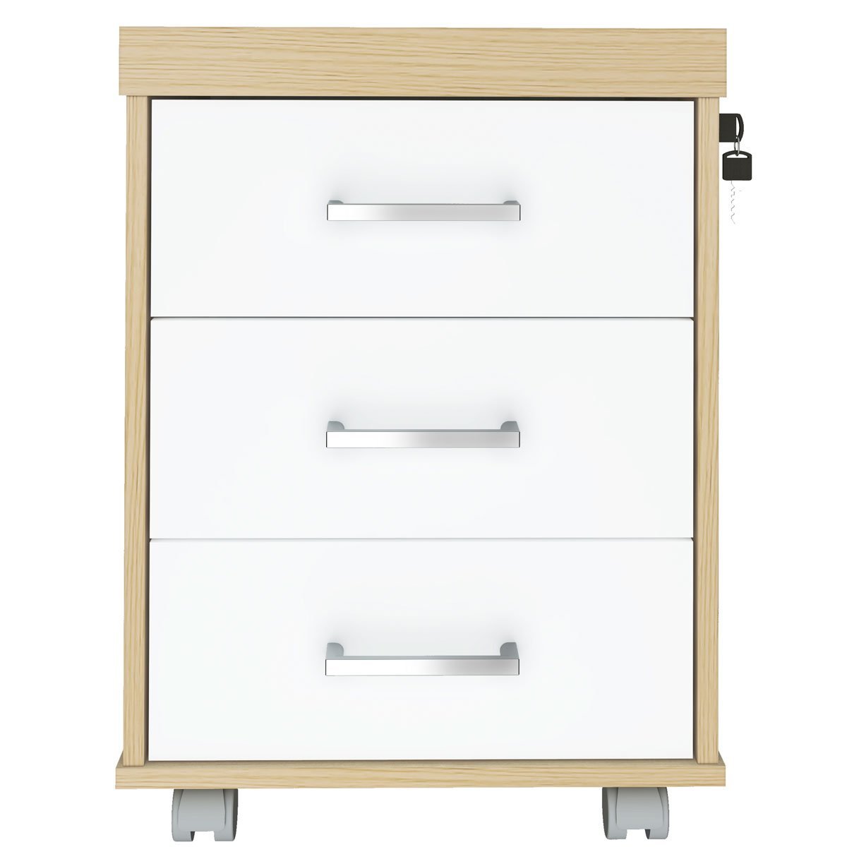 Gaveteiro para Escritório C/ Chave 3 Gavetas C/ Rodízios Carvalho/branco