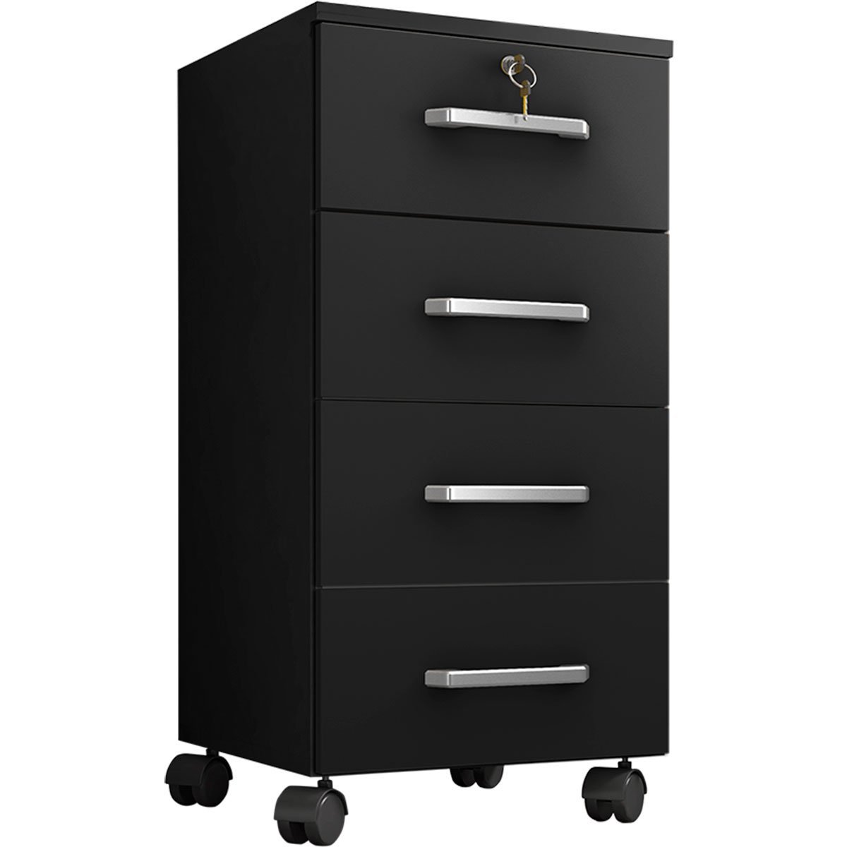 Gaveteiro p/ Escritório Chave e Rodízios 4 Gavetas Gávea Preto
