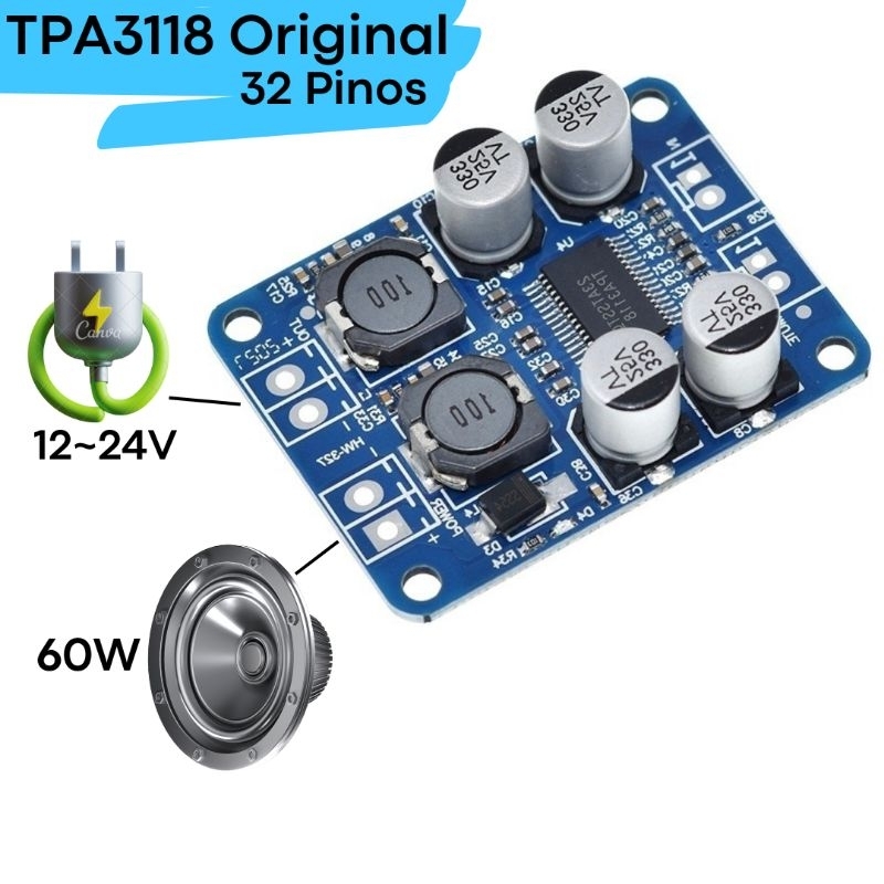 Módulo Amplificador de Áudio Tpa3118 60w 12~24V
