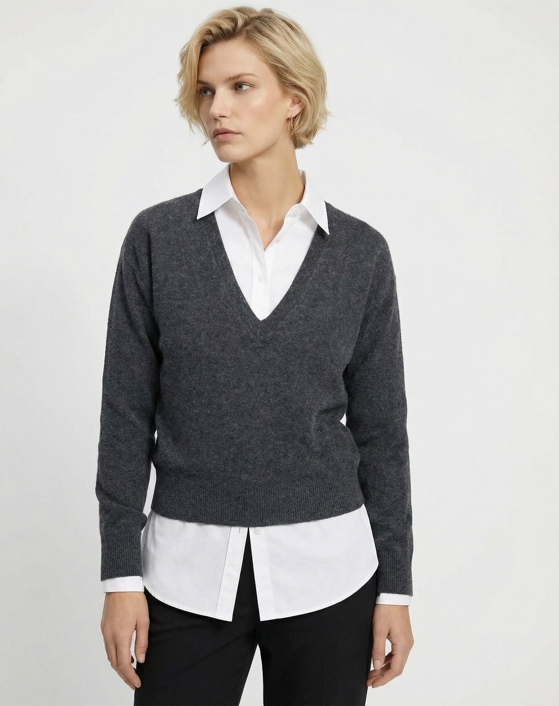 Suéter Cashmere Deluxe Gola V - Cinza Mescla Escuro