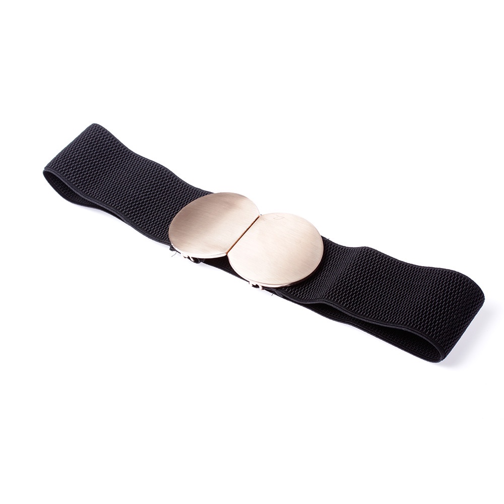Cinto Largo em Elástico Preto com Fivela Redonda em Metal C75-85 cm Moda Festa Ajustavel