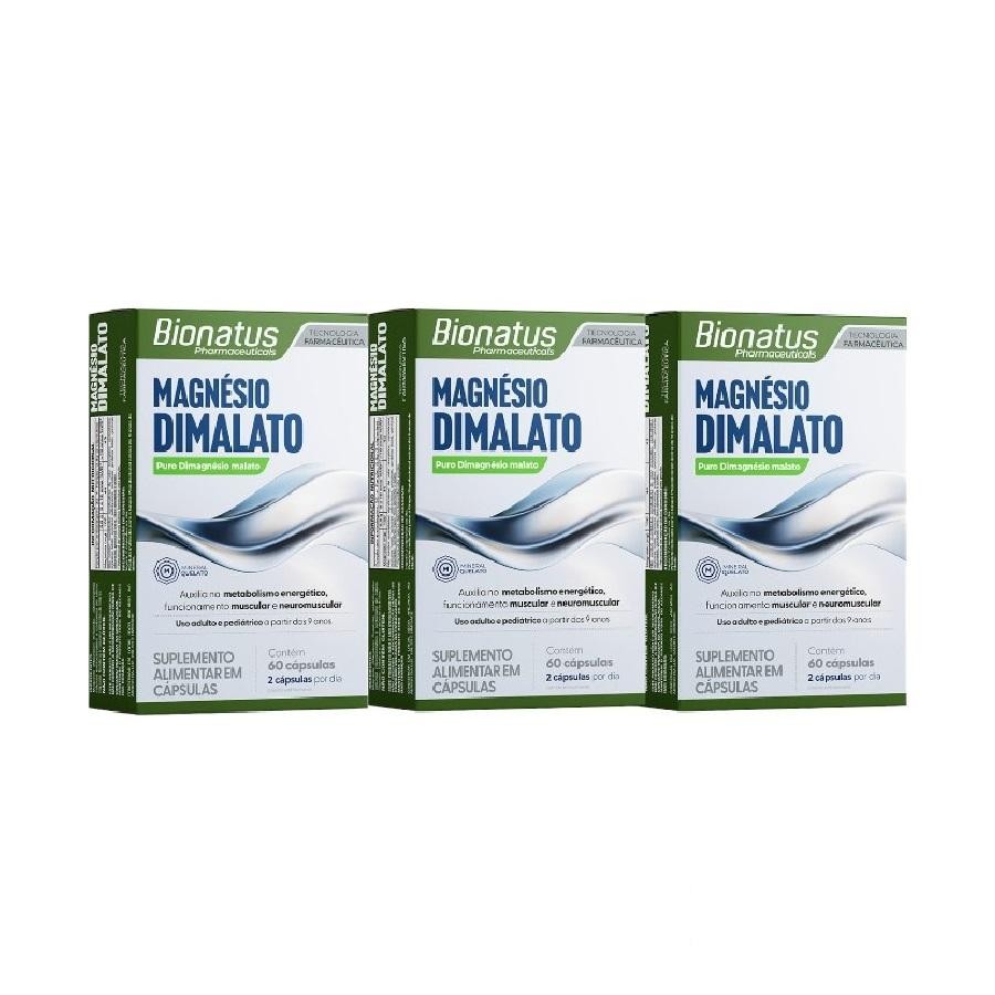 Kit Magnésio Dimalato Bionatus Com 3 Potes De 60 Cáps Cada