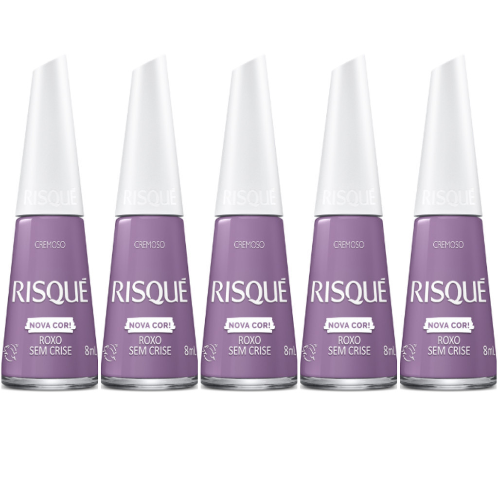 Kit 5 Esmalte Risque Roxo Sem Crise Hipoalergênico 8ml