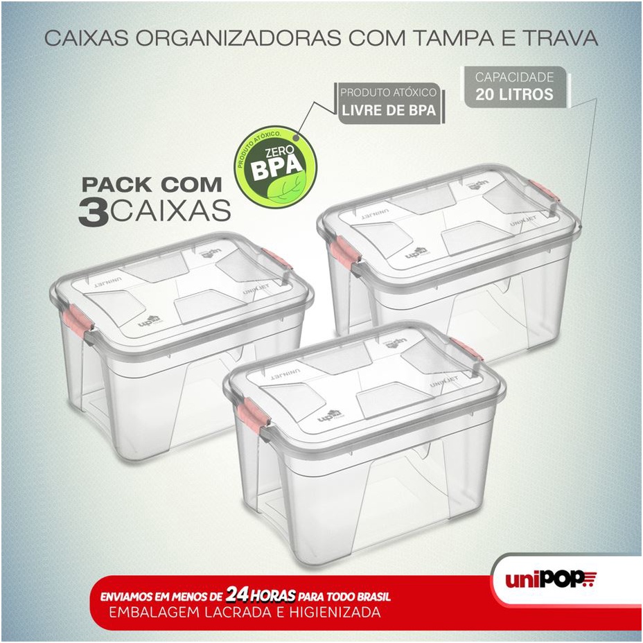 Kit Com 3 Caixas Organizadoras Transparentes Com Travas Coloridas 20 Litros Uninjet