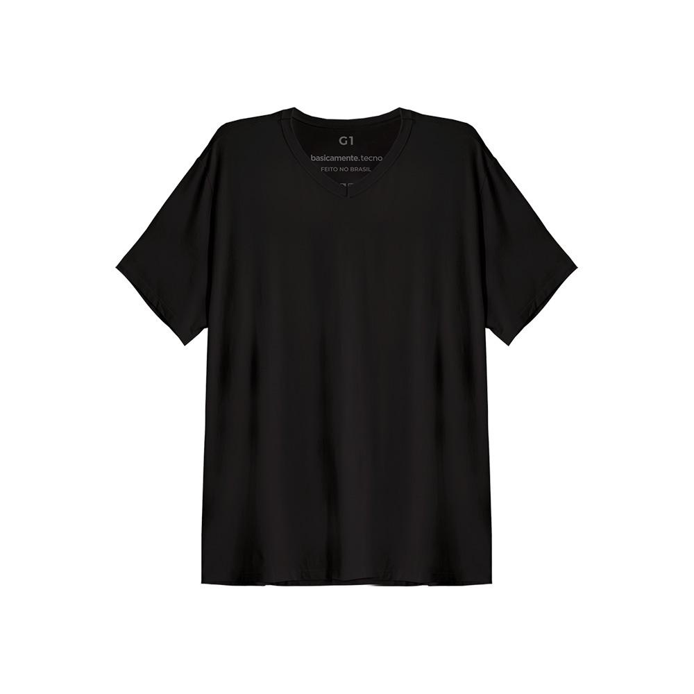 Camiseta Básica Masculina Tecnológica Modal Preta Gola V