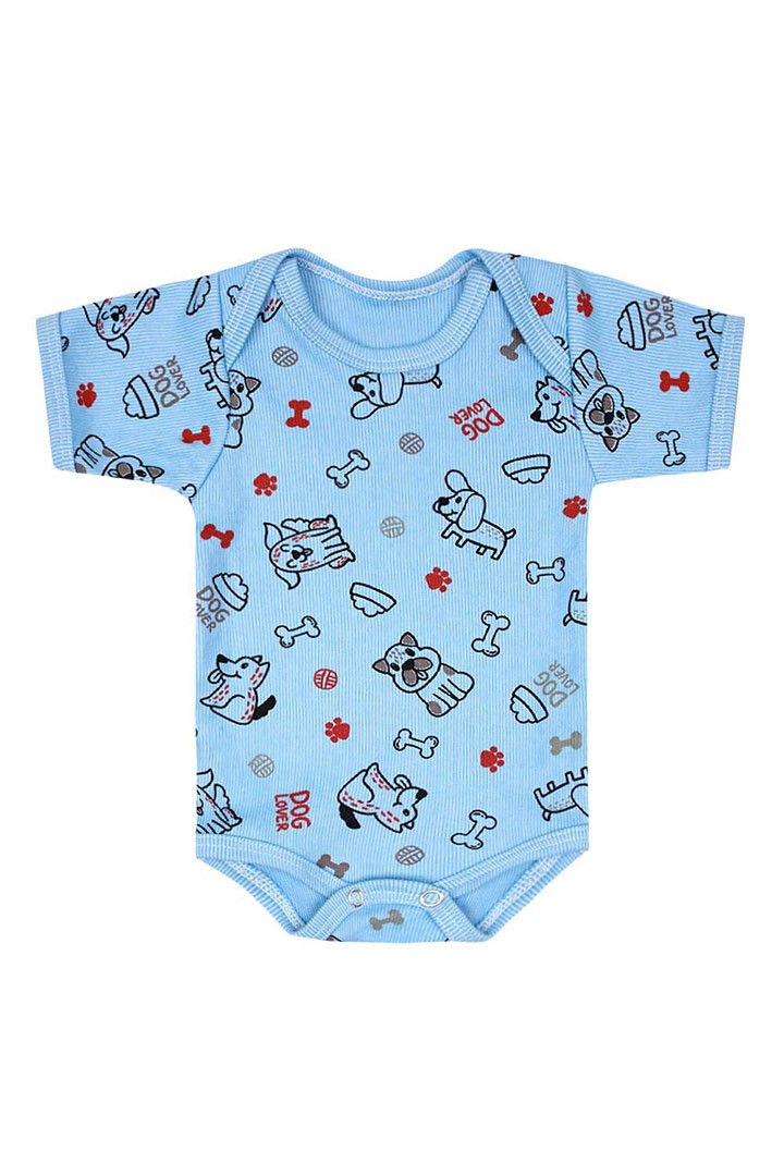 Body Bebê Masculino Manga Curta Canelado Azul Doguinho (RN/P/M/G) - Top Chot