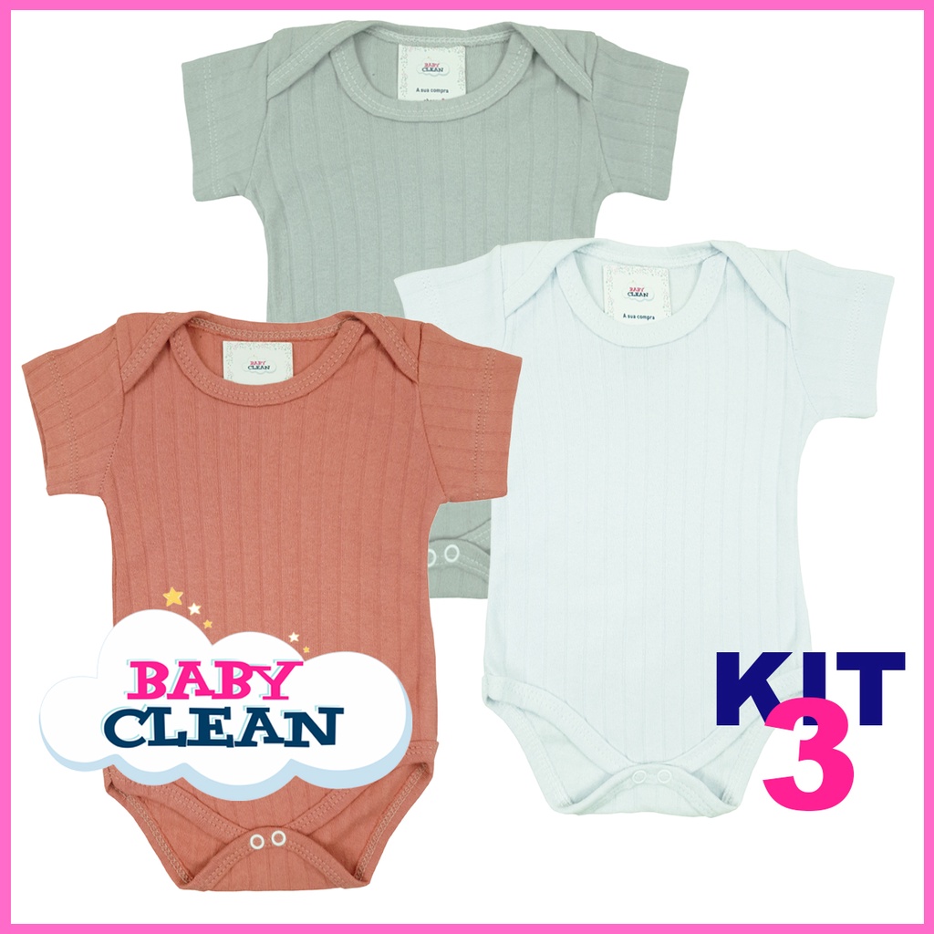 kit 3 Body Bebê Manga Curta Liso Infantil Suedine 100% Algodão Menino Menina RN a 2 Anos