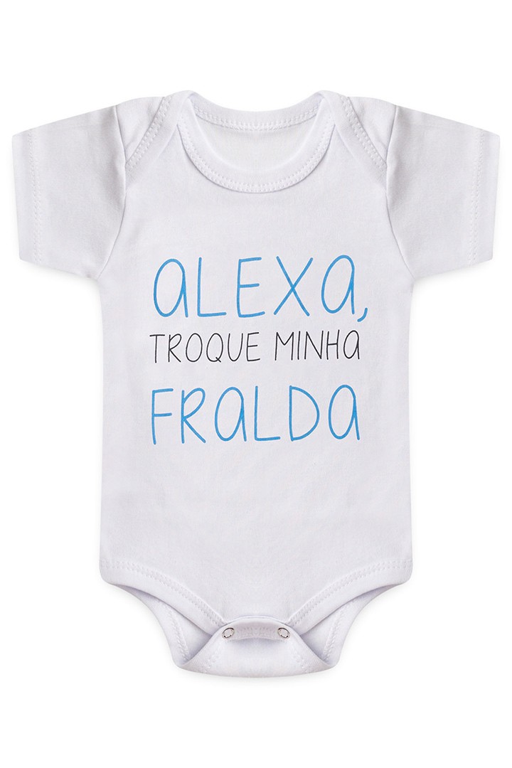 Body Bebê Manga Curta Suedine Branco Alexa (RN/P/M/G) - Bebê Fofuxo