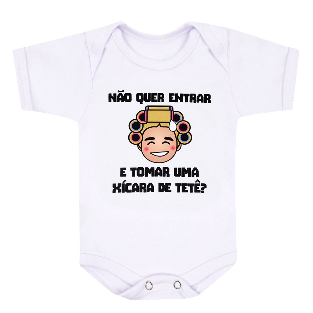 Body Bebê Manga Curta Suedine Branco Tomar uma Xícara (RN/P/M/G) - Bebê Fofuxo