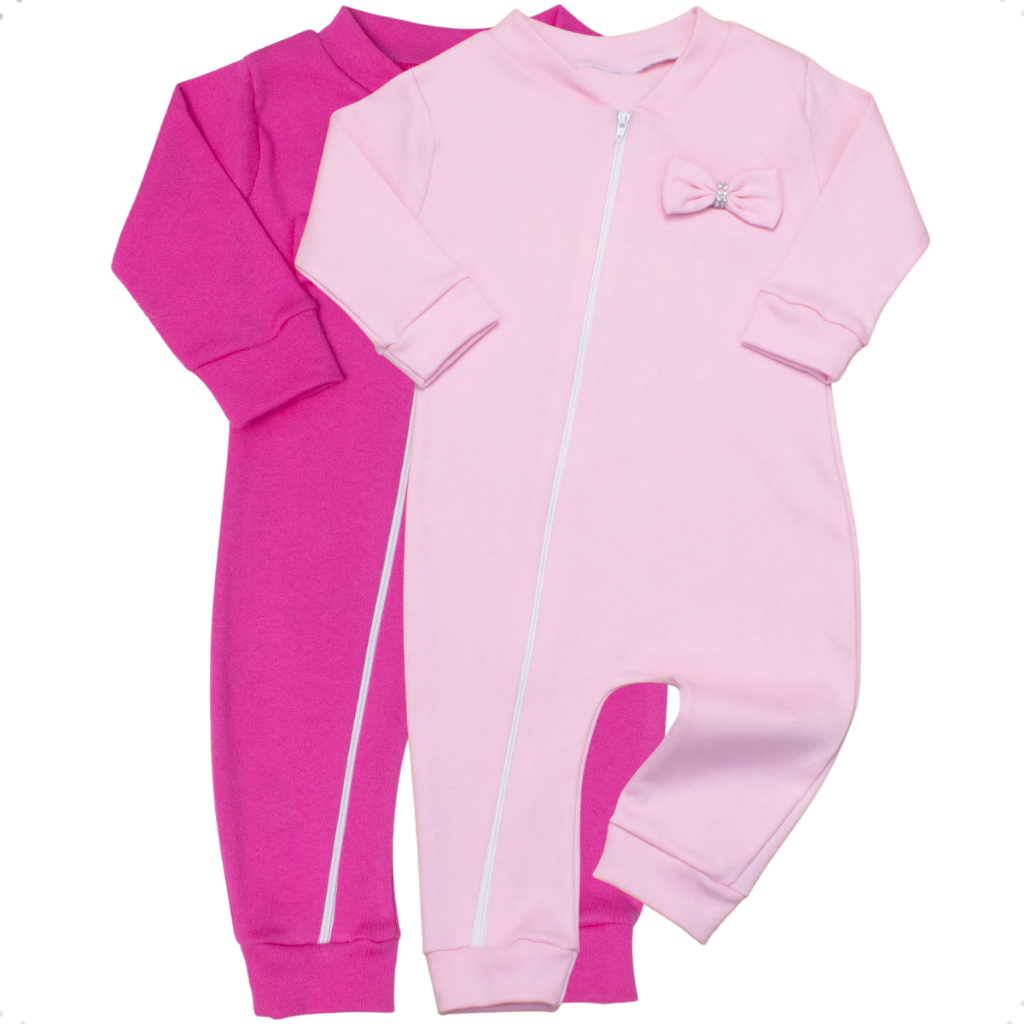 Macacão Bebe Menina Com Ziper 02 Peças Pink E Rosa Lisos - Conjunto Infantil Macacao Feminino