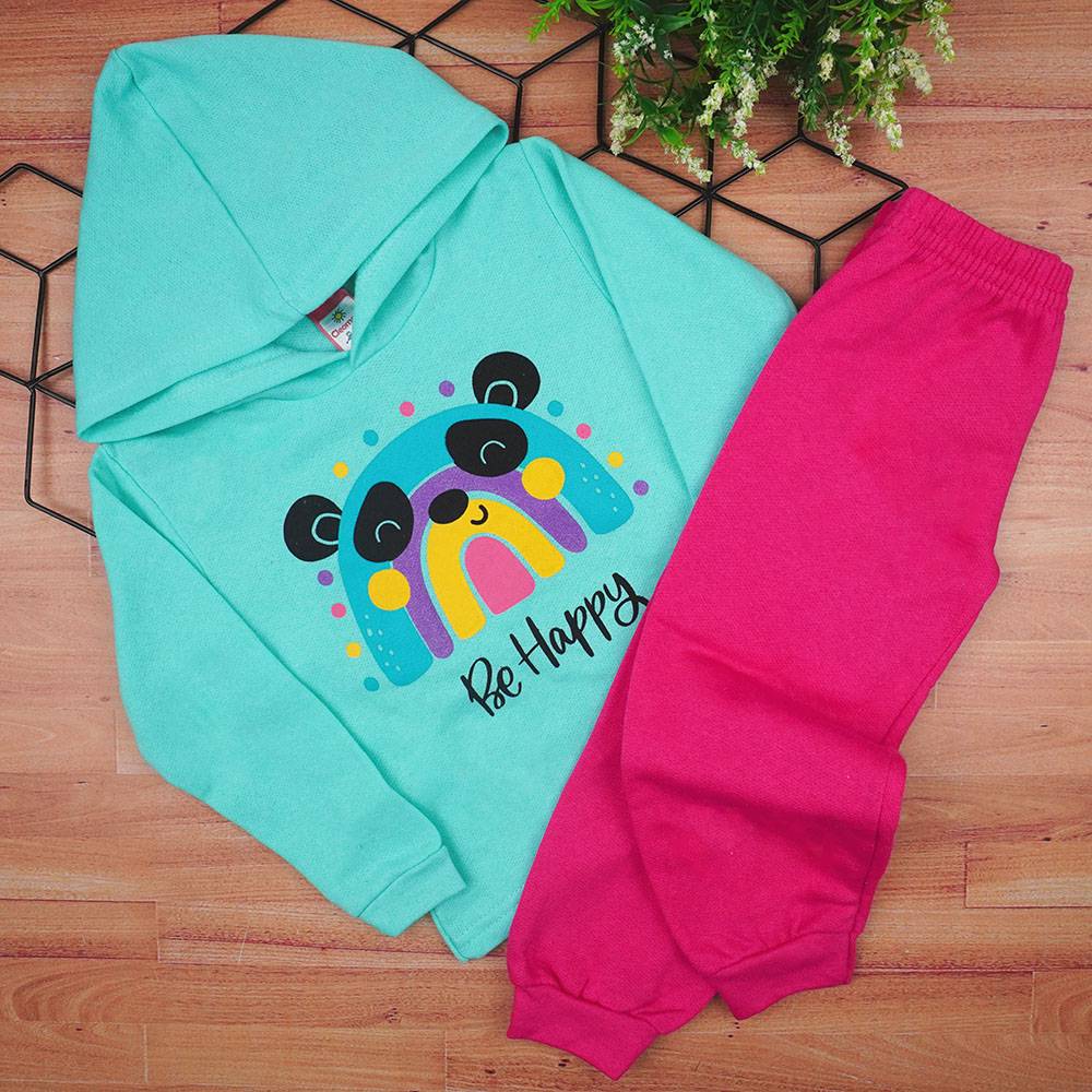 Conjunto Bebê Feminino Moletom Blusa com Capuz Verde Água Ursinha e Calça Pink (1/2/3) - Cleomara