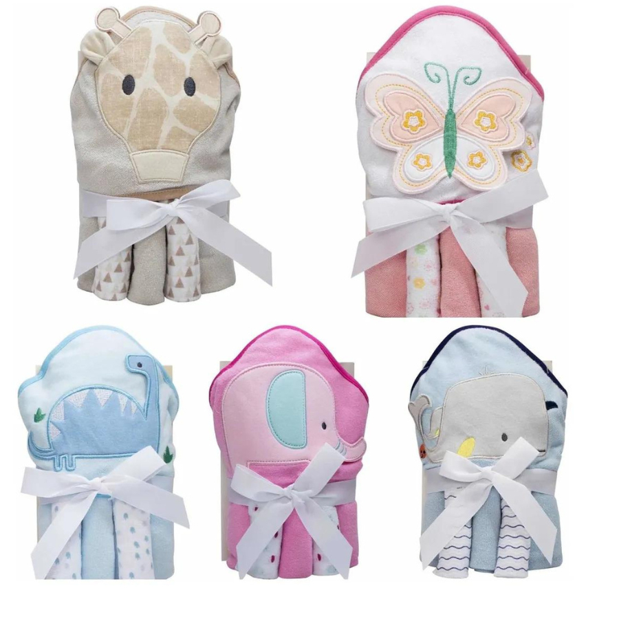 Kit 4 peças 1 Toalha banho Capuz bebê +3 Toalha de Boca ( Babete ) Camesa