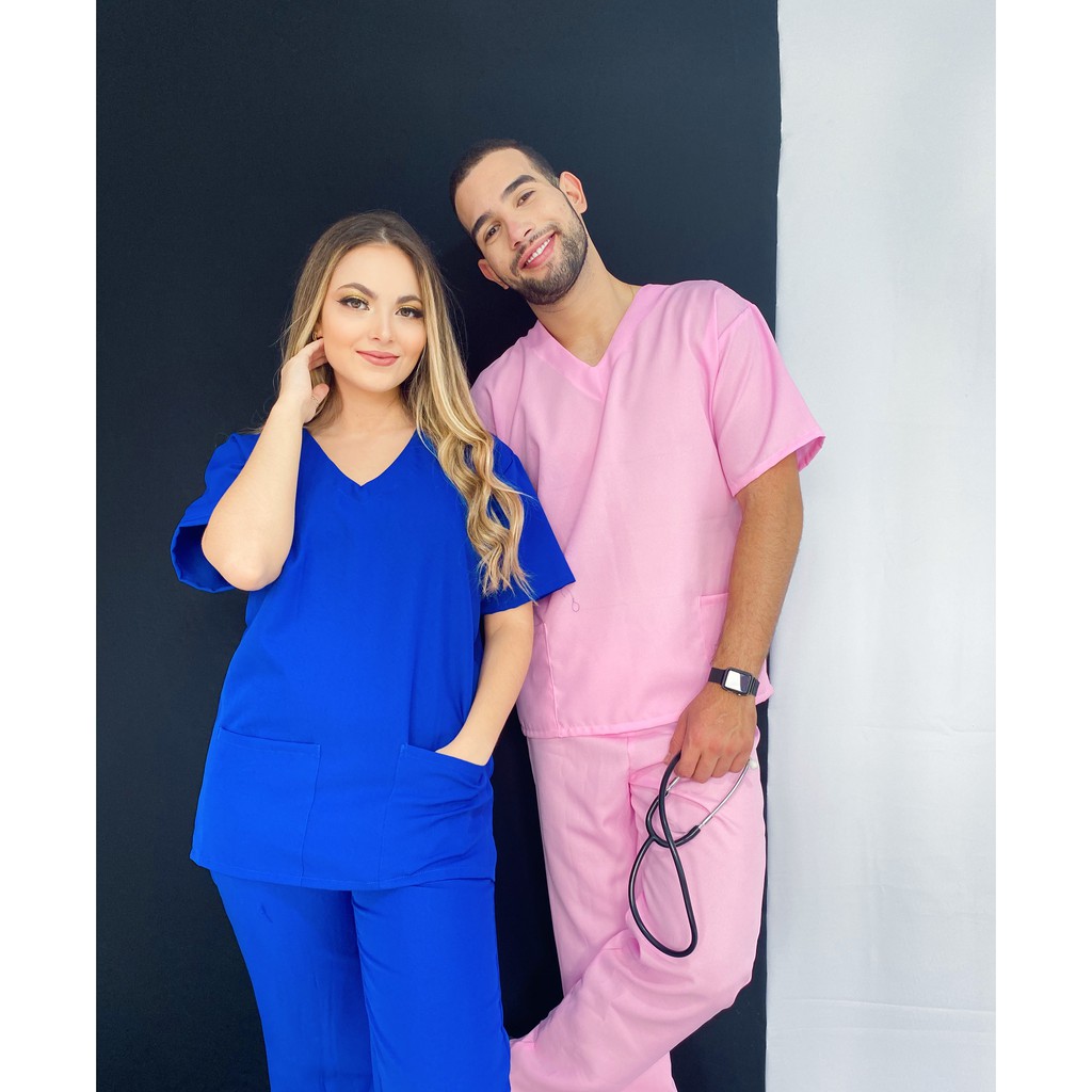 Kit de Conjunto de Pijama Cirúrgico Scrub (2 Blusas e 1 Calça) seca rápido não amassa Oxford dentista medico enfermeiro profissional da saúde unissex Pacientes e visitantes que circulam em áreas hospitalares Bordado Grátis