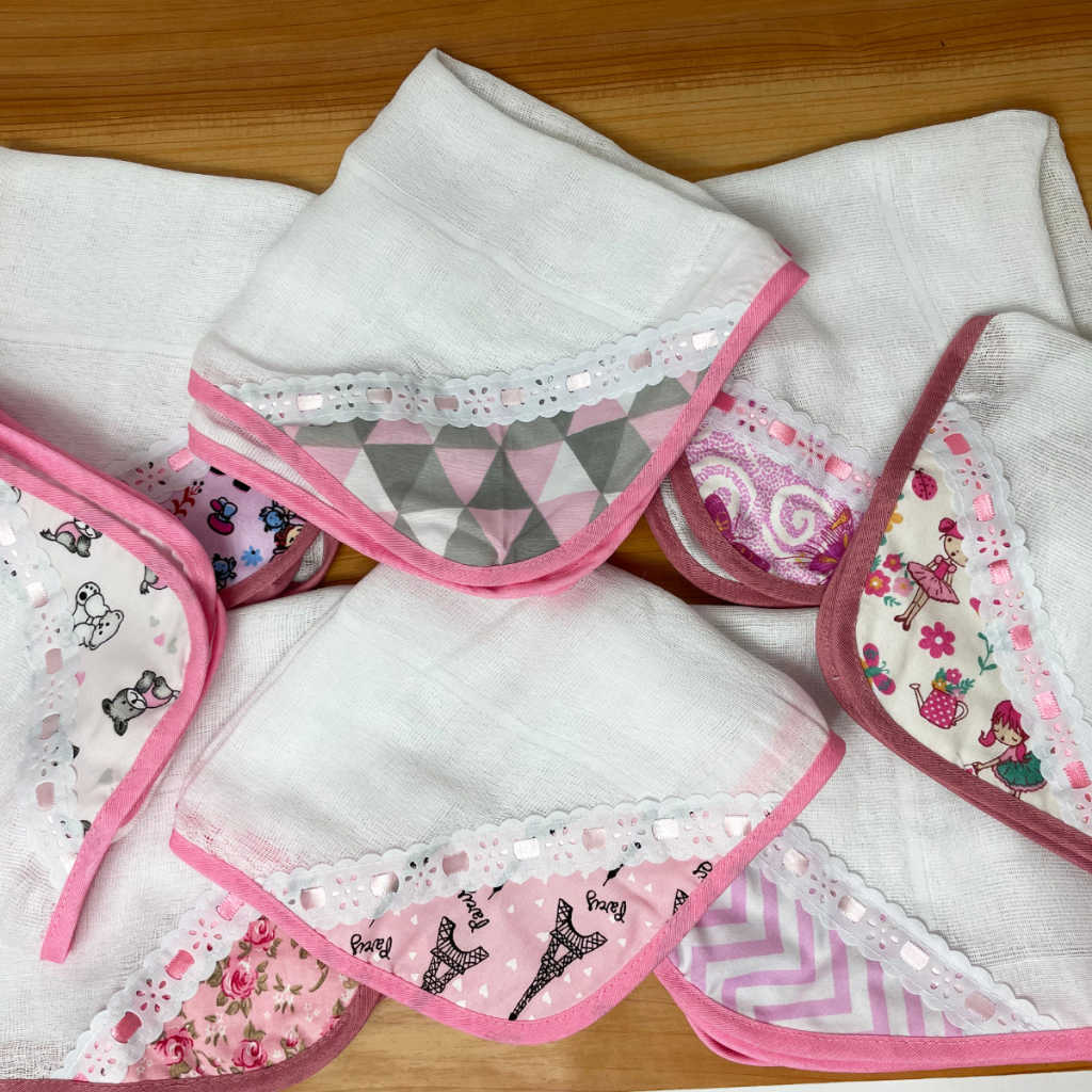 Kit 5 Fraldinhas Fralda Paninho Toalha de Boca Para Bebê Enxoval Menina Rosa