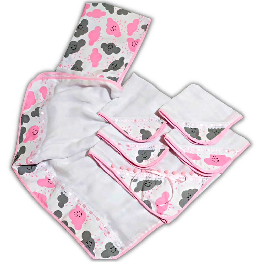 Kit Higiene Bebe Toalha Bebe + Manta Bebe + 4 Pano de Boca Bebe Kit Enxoval Menino Menina Varias Estampas