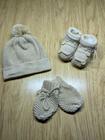 Kit luva touca e sapatinho bege ,para bebê RN até 2 meses tricô