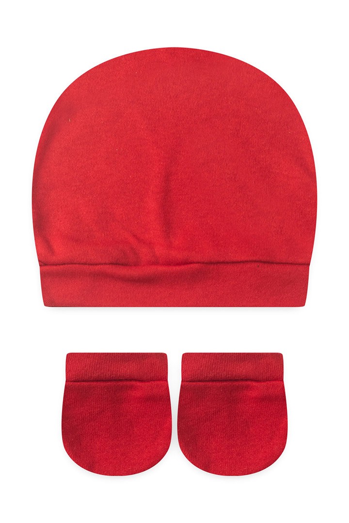 Kit Touca e Luva Bebê Suedine Vermelho - Godoy
