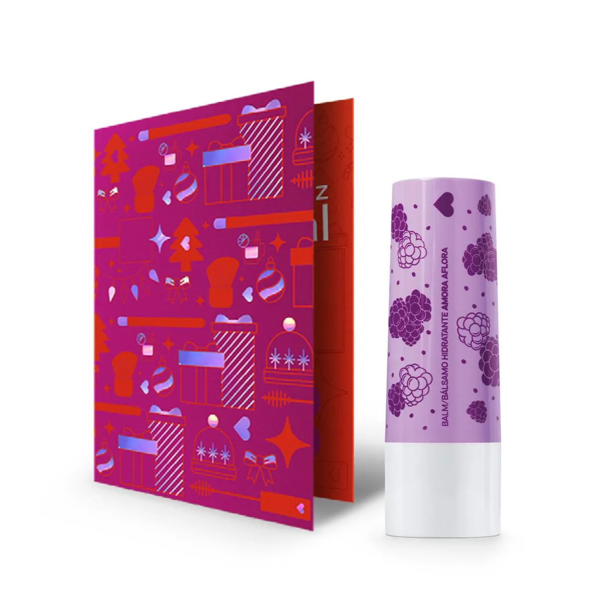 COMBO PRESENTE NATAL: BALM LABIAL HIDRATANTE ROXO AMORA AFLORA 3,5G + CARTãO PRESENTE QDB
