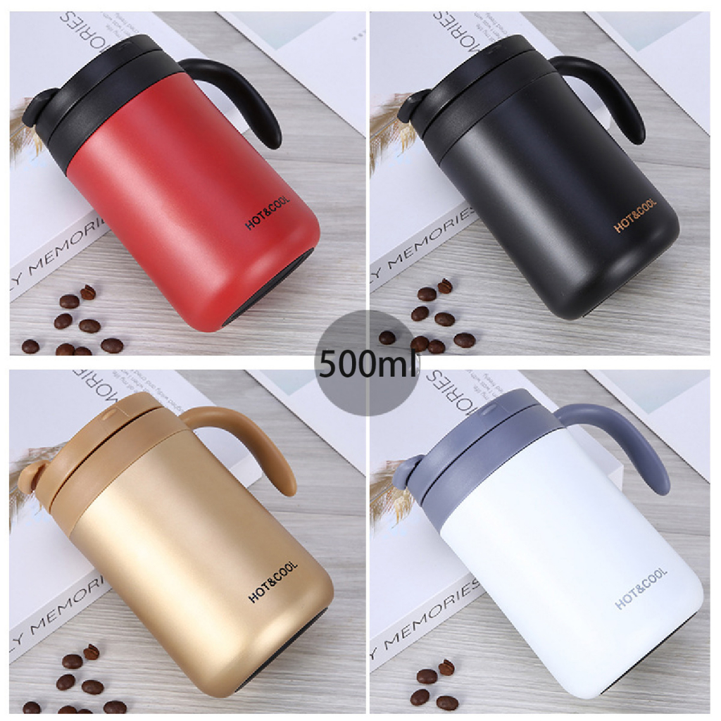Caneca copo térmico inox parede dupla com alça para bebida quente ou fria 500 ml