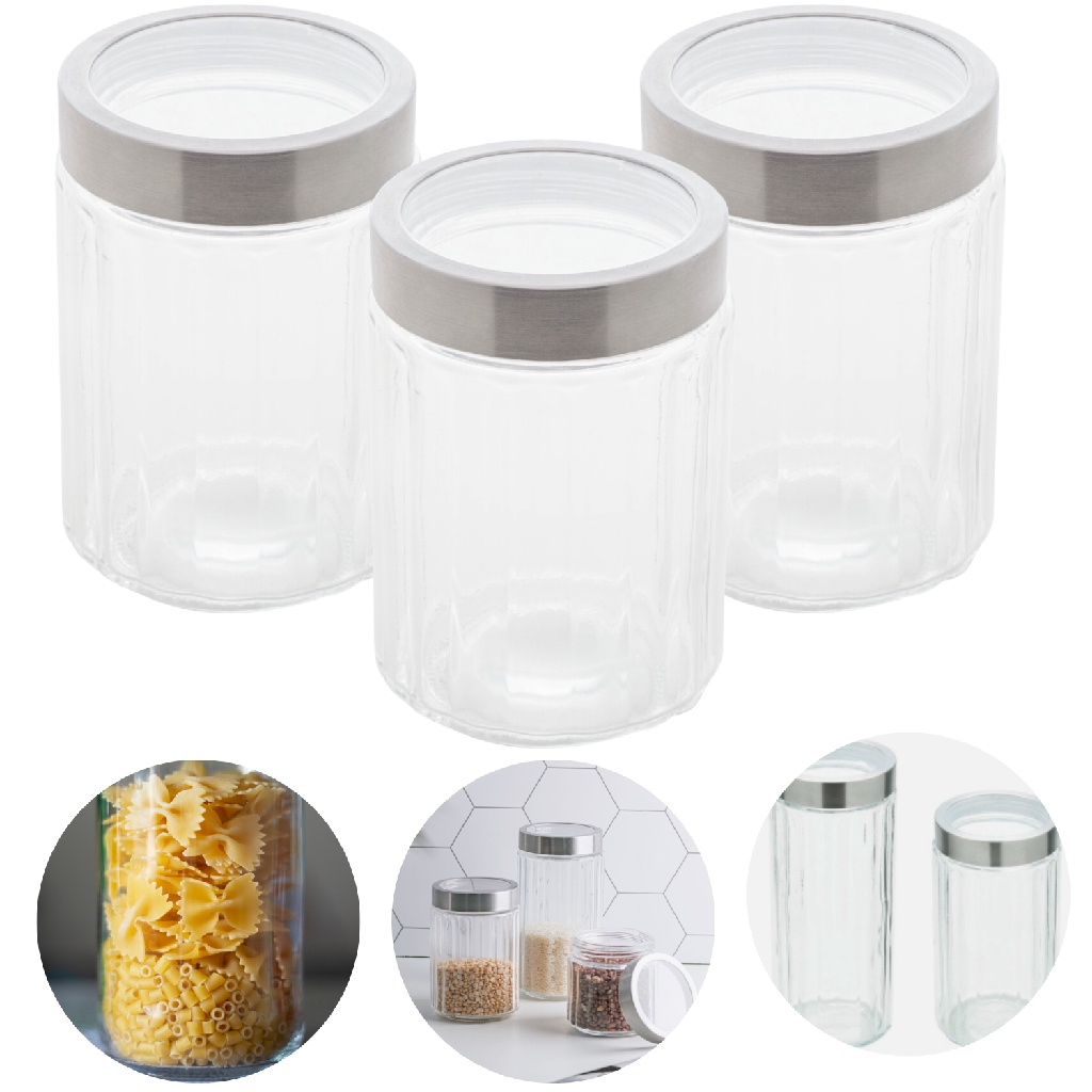 Kit 3 Pote de vidro Borossilicato Medio redondo 1,2 L tampa cinza