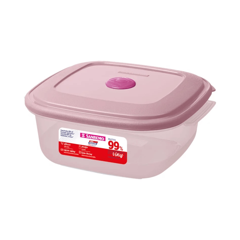 Pote Plástico Quadrado Rosa 1,3L Ultraprotect Sanremo