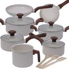 Kit Jogo De Panelas Ceramica Antiaderente Fundo Triplo Fogão Indução Cooktop Mimo Style Cook Marmol Conjunto 10 Peças Panela Caçarola Frigideira Leiteira E Utensílios