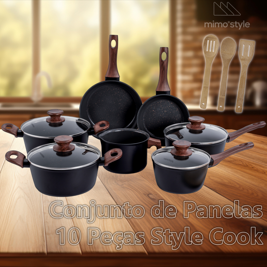 Conjunto Jogo de Panelas Antiaderente 10 pçs Cerâmica Mimo Style Cook Indução Preta Revestimento