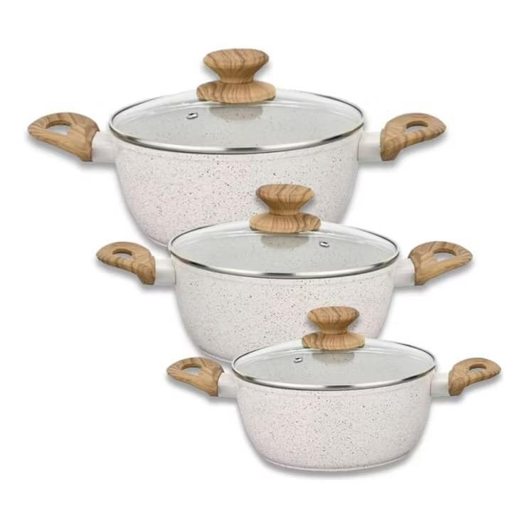 Conjunto De Panelas Cerâmica Fundo Triplo Indução Grossas Tampas De Vidro
