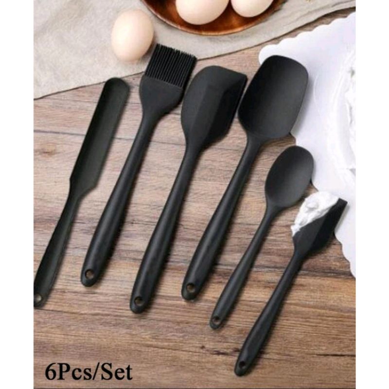 kit Espátula De Silicone Utensílios De Cozinha Com 6 Peças Preto
