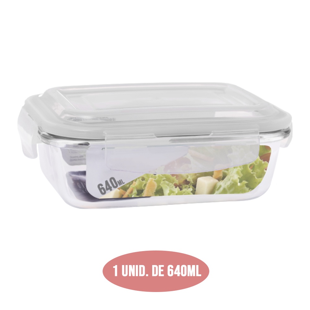 Pote 640ml Retangular Vidro Hermetico com Tampa Marmita