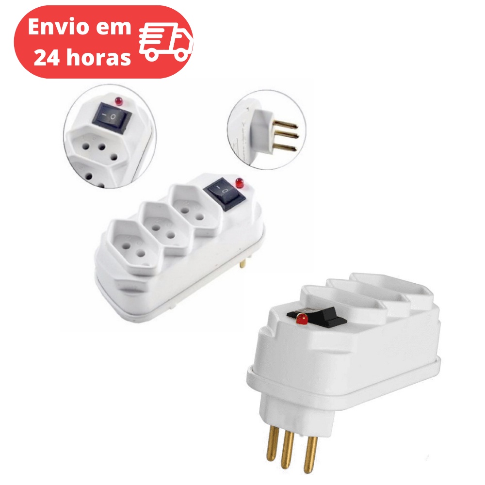 Adaptador De Tomada Benjamim 3 Saidas POWER 2P + T 10A 250V Plug Padrão 10 A