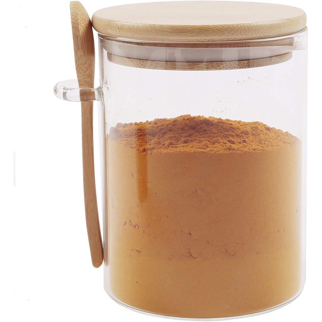 PROMOÇÃO Pote Vidro 8,5 x 15 cm = 750ml Borossilicato Hermético Tampa E Colher Bambu Boro silicato