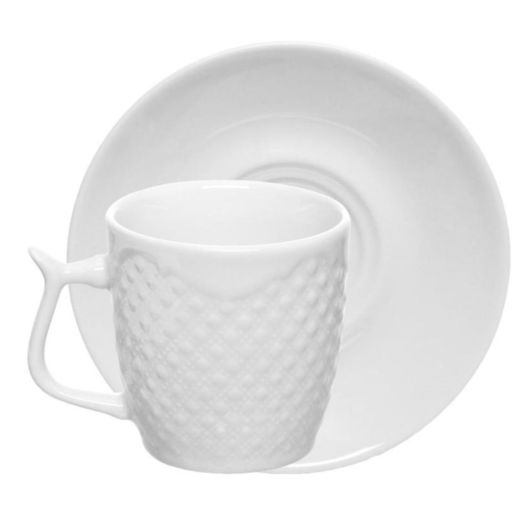 Conjunto 12 Xícaras de Café com Pires 190ml Porcelana em Relevo Tassel Germer Branco