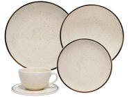 Aparelho de Jantar e Chá 20 Peças Oxford de Cerâmica Bege e Marrom Redondo Unni Brisa