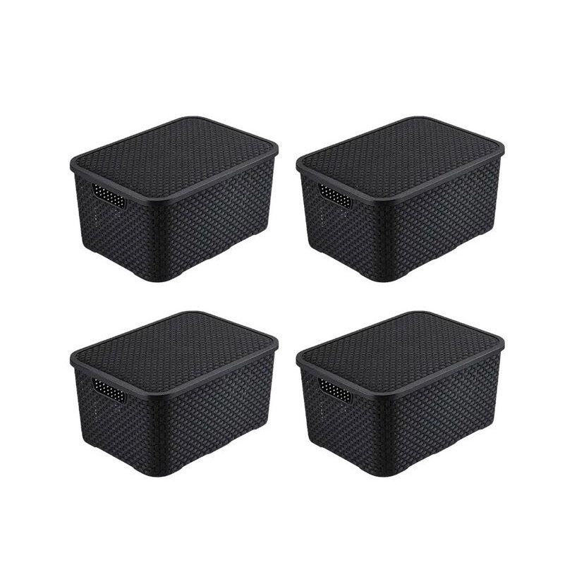 Kit 4 Caixas Organizadoras Rattan 40 Litros Preta Arqplast
