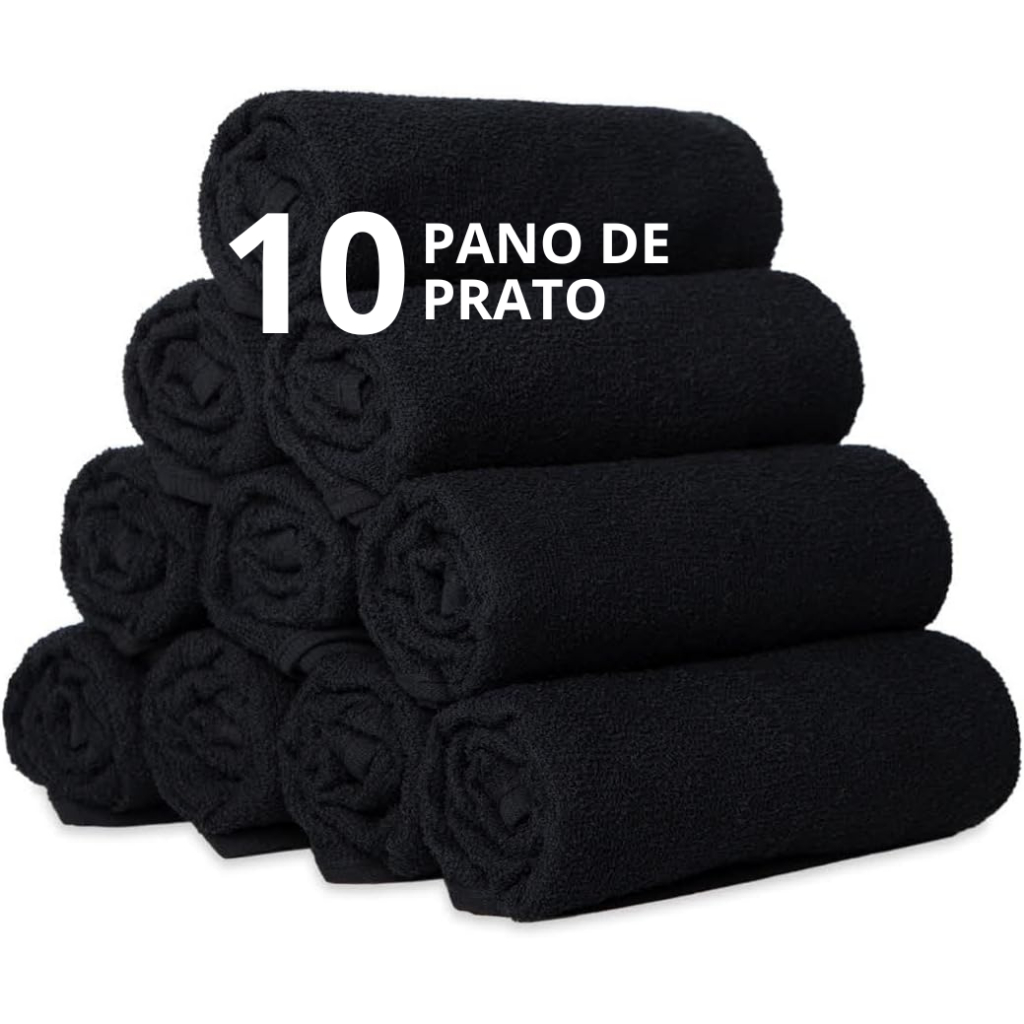 Kit 10 Panos De Prato Felpudo Atoalhado Preto Gourmet Cozinha Com Bainha Grosso 100% Algodão