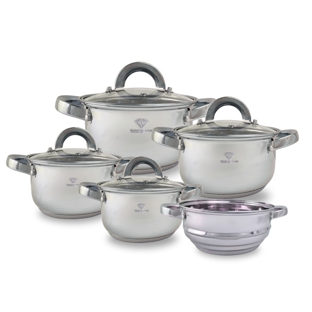 Jogo de Panelas 19 Peças Aço Inox + Acessórios com Fundo 9 Camadas para Indução ou Gás