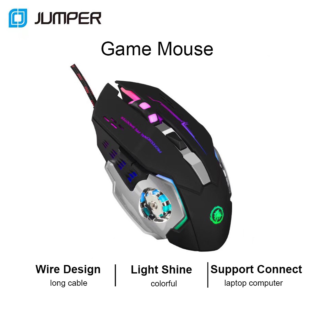 Jumper Mouse Gamer Fio Gaming Mouse Óptico Computador Laptop Notebook 2.4GHz Ajustável 1600 DPI Led Rgb