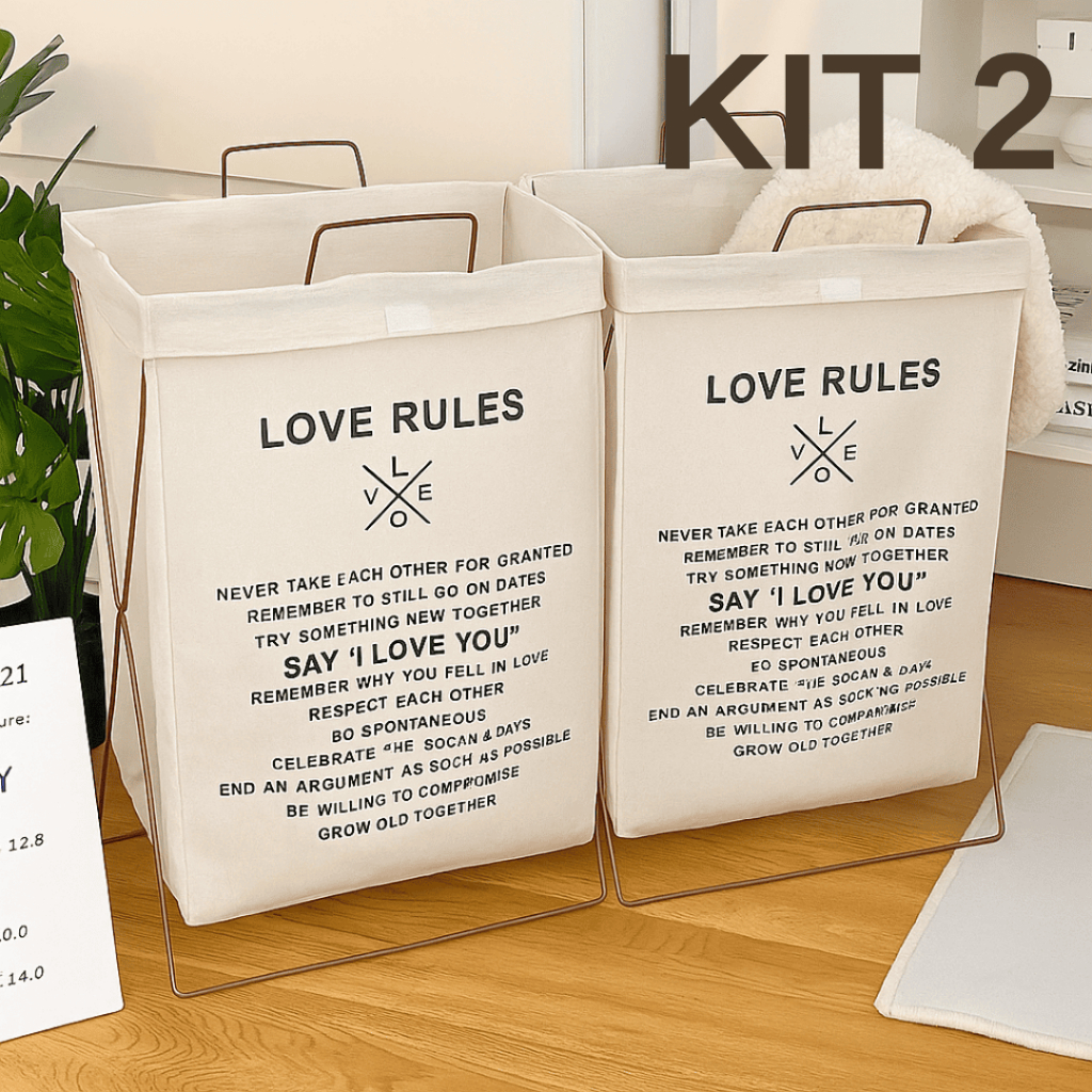 KIT 2 Cesto De Roupa Dobravel Com Suporte Em X Multiuso Organizador Quarto Banheiro Lavanderia KIT FAMILIAR SN-11