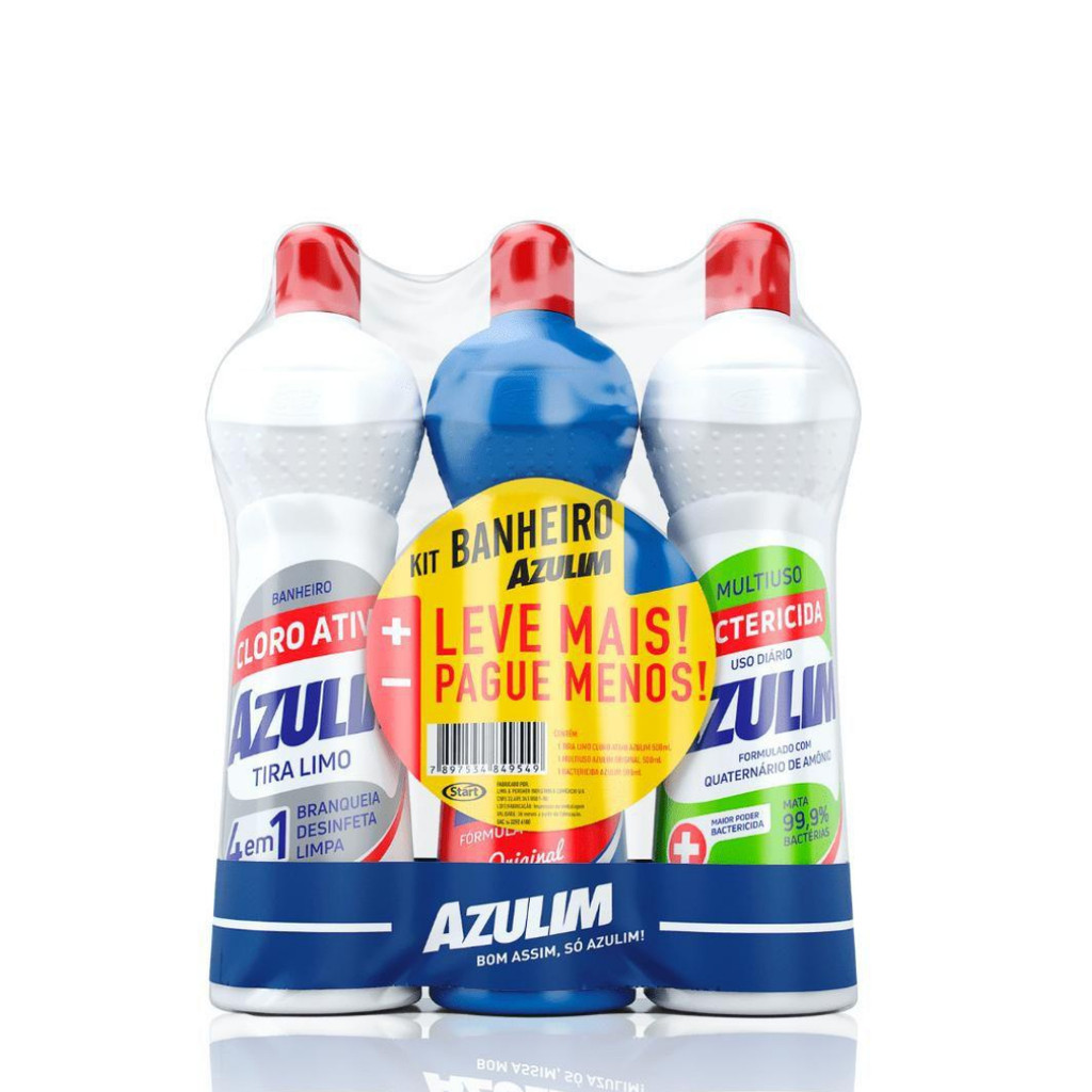 Kit Banheiro Econômico Azulim 3 Produtos Tira Limo Bactericida Limpador Multiuso Uso Diário Limpeza Geral